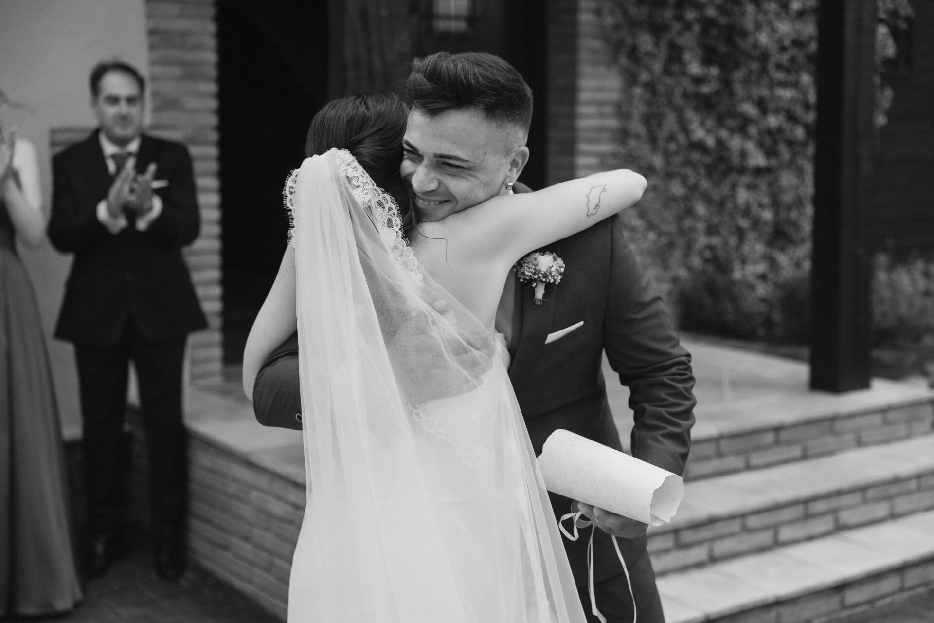 Ese fue el fin de la ceremonia y el inicio de sus primeros pasos como marido y mujer bajo una lluvia de pétalos blancos entre risas.
