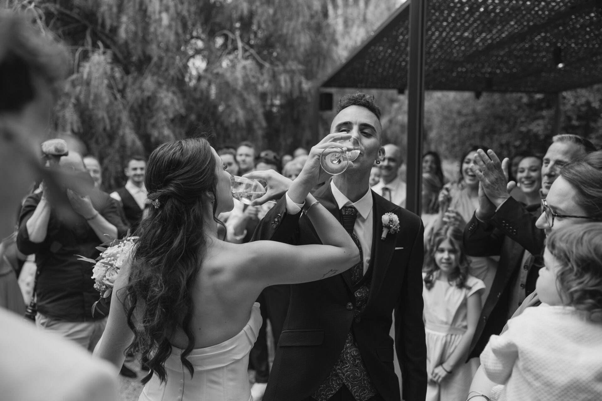 Durante la cena, A&C prepararon una sorpresa/juego: organizaron un rasca y gana para todos los asistentes. Un momentazo amenizado con musica que transformó la cena en una fiesta llena de bromas entre los amigos que decían ser los ganadores del premio. Detalles así son los que hacen que una boda en el Castell de Peralada no sea solo un «evento» para los invitados, sino una experiencia que van a recordar.